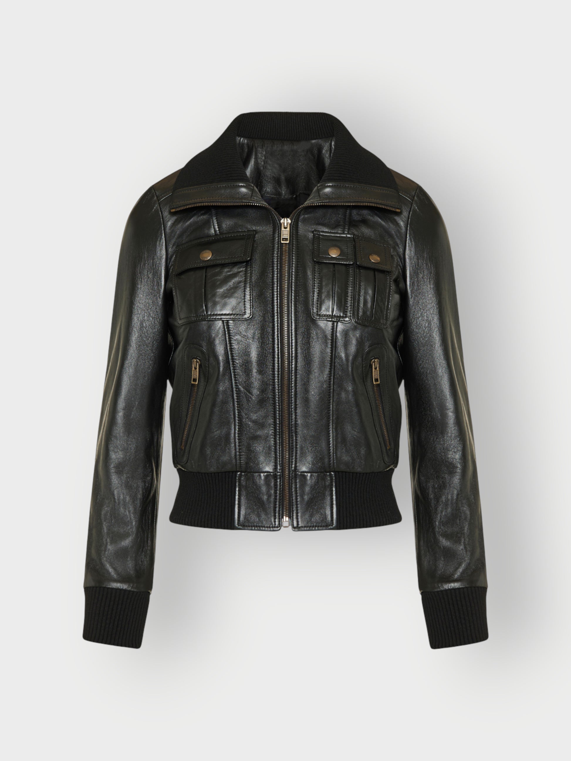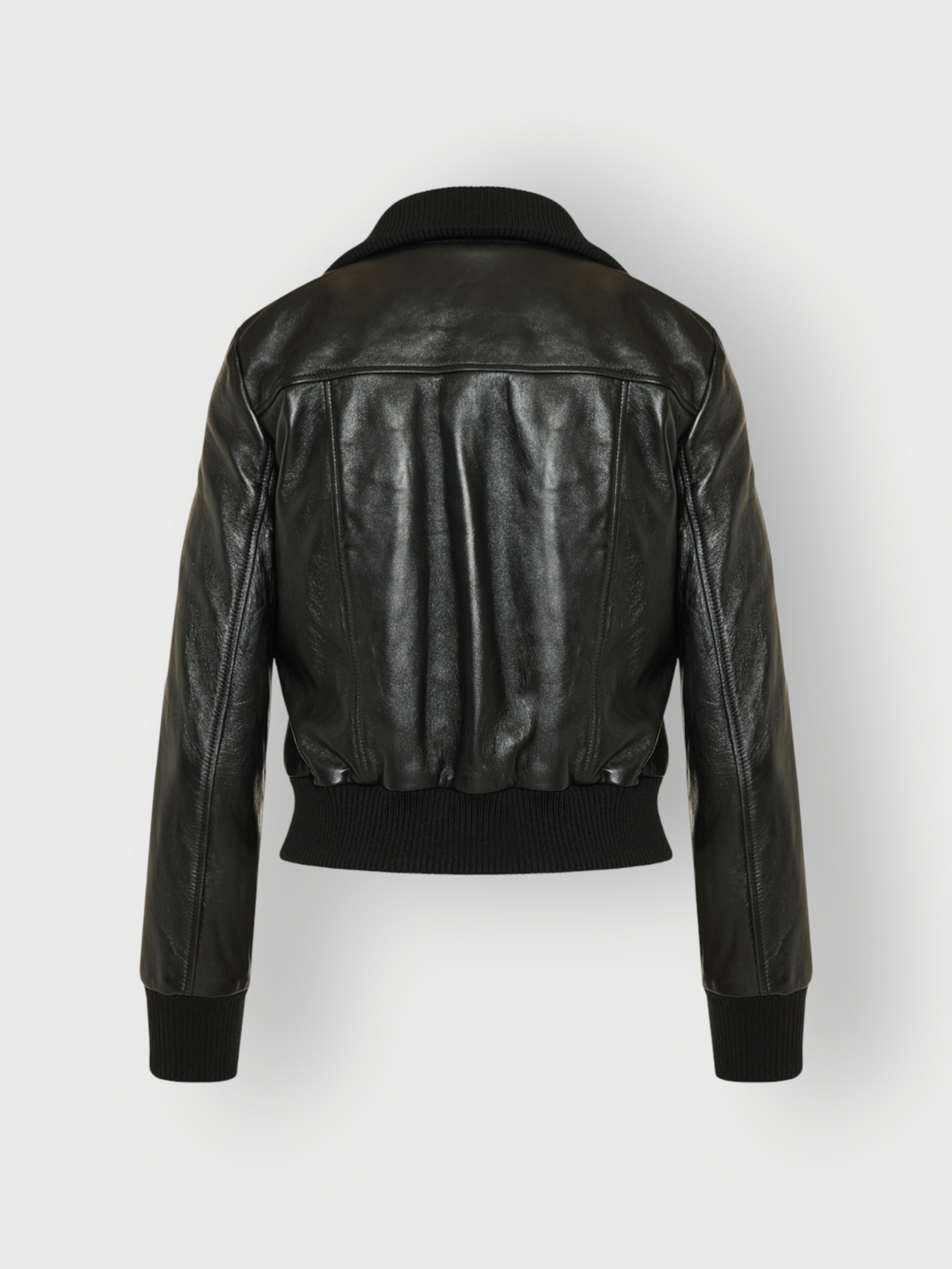 The Go-To for Instant Cool. For that perfect blend of casual confidence and undeniable edge, nothing beats the bomber jacket. Our women's black leather bomber takes the classic silhouette and elevates it with rich, supple leather. The iconic ribbed collar, cuffs, and hem define the timeless shape, while the simple straight zip keeps the look clean and easy to wear. It’s the versatile statement piece you can throw on over anything for a look that is always relaxed, powerful, and effortlessly stylish.