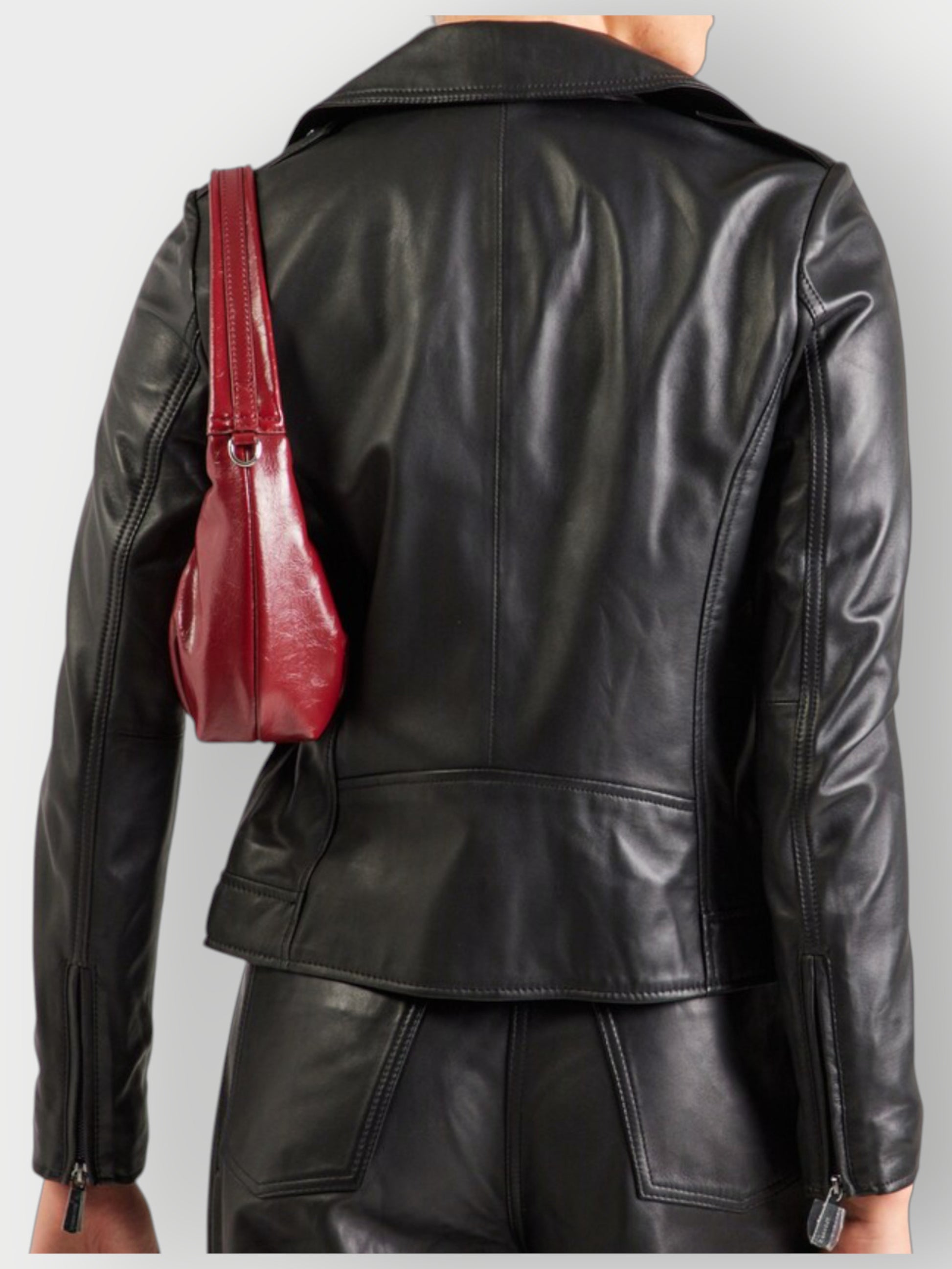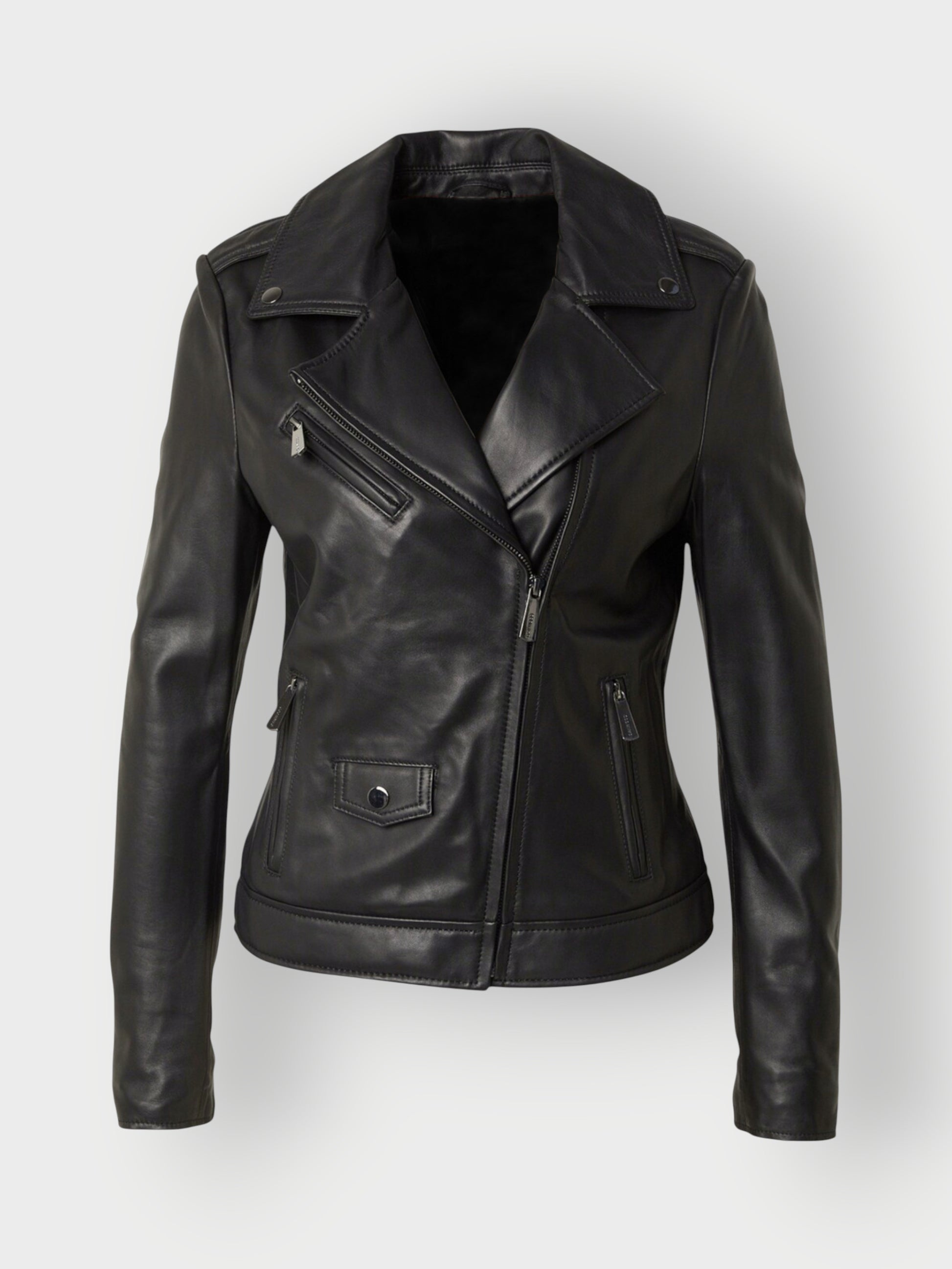 The Original Icon. Some styles are simply untouchable, and this classic motorbike jacket is one of them. Our women's black leather jacket is the authentic blueprint of rebel fashion, featuring the wide, sharp lapel collar and the bold asymmetrical zip closure. The smooth, supple leather is cut to perfection, delivering a tailored fit that boosts confidence and instantly sharpens your silhouette. This is more than a jacket—it's a fundamental piece of your bold, lasting style.